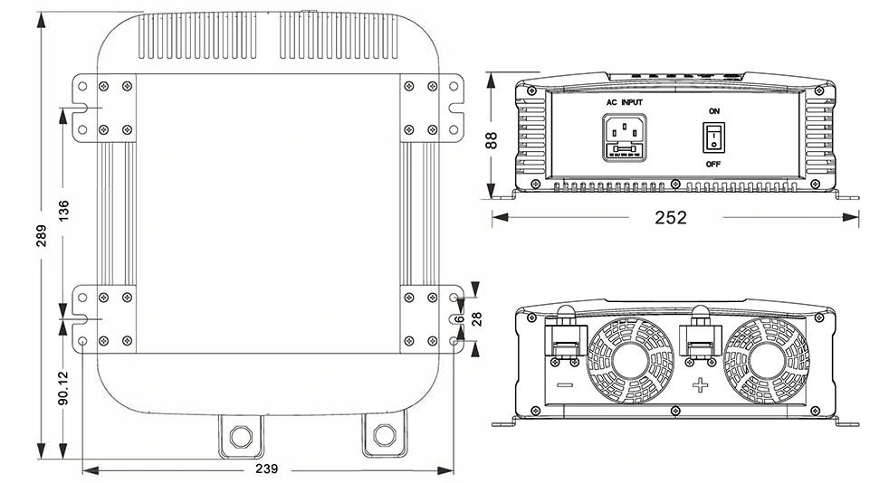 Mechaniniai brėžiniai: (289x252x88mm)