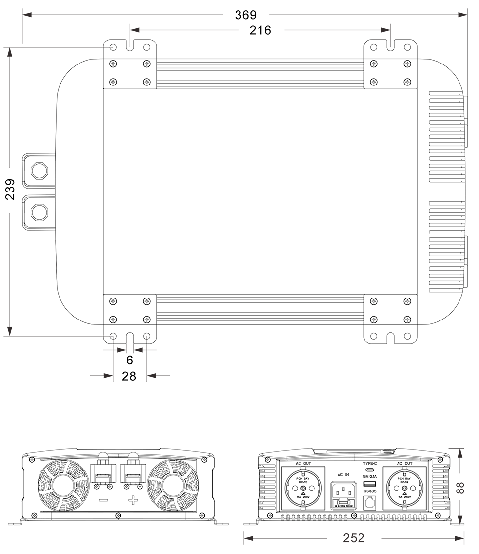 Mechaniniai brėžiniai: (369x252x88mm mm)