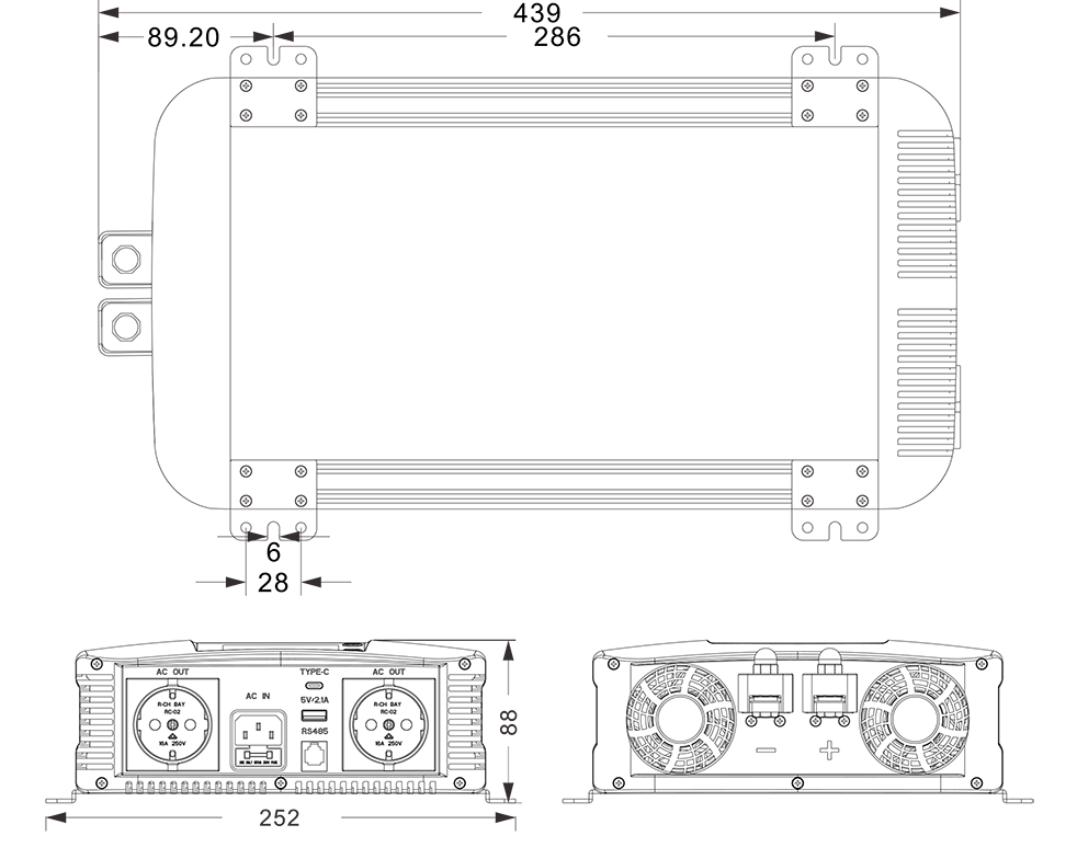 Mechaniniai brėžiniai: (439x252x88mm)