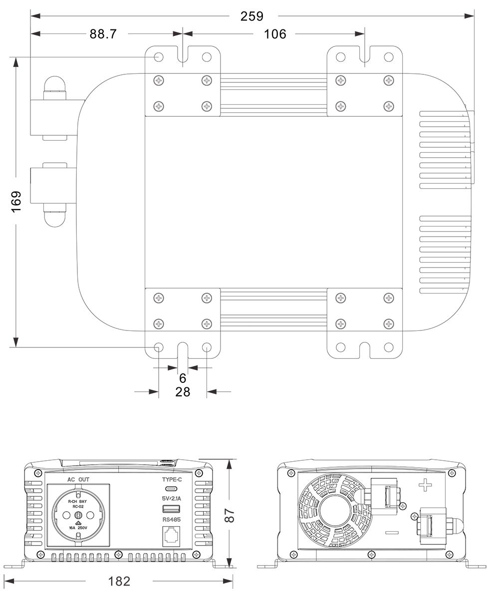 Išvestis AC įtampa 100/110/115/120VAC Saulės sistema ir kt.
